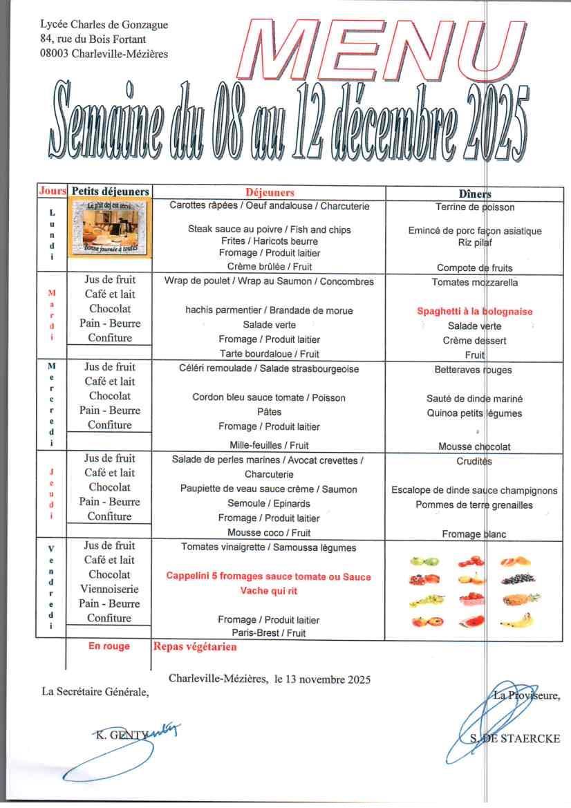 Menu de la semaine